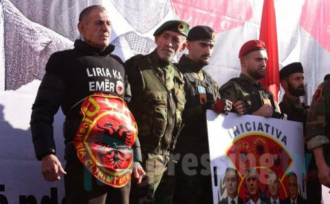 Не ова не е Приштина или Тирана. Ова е центарот на Скопје каде се протестираше за поддршка на УЧК која е родена на Косово а ни ја донесе војната и во Македонија преку локални експозитури како ОНА. Лидер на ОНА беше никој друг туку Али Ахмети, кој среде Шкуп, како што тој го нарекува Скопје организираше протест за водачите на УЧК Хашим Тачи и Кадри Весели на кои им се суди во Хашкиот суд за воени злосторства. Да за воени злосторства над Србите на Косово. Еве Хашим Тачи е посочуван во извештаи дека раководел со т.н Жолта куча.Таа е онаа озогласена куќа на југот на Албанија каде се ваделе органи на Срби а Тачи наводно бил координатор. Секој орган си имал различна цена-срце и зачуван црн дроб од некој што не пие алхохол оделе најдбро. И за таквите момчиња Али Ахмети вика дека се невини и оти УЧК се бореле за слобода.