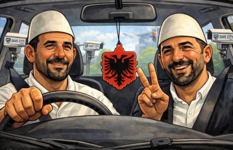 Ги знаете двајцата другари Љуљзим и Идриз Тие се знаат од мали, некогаш беа скарани заради пуста политика, ама сега пак се блиски. Како брача. Ги спои љубовта кон колите и камерите. Љуљзим живее во Чаир и вози Голф тројка. Секој ден кога иде на Кванташки по нова роба го фаќа камерата и го казнува само затоа што е Албанец. Камерата му ја препознава колата на која се мрда раче на шал таблата и виси знаменце од УЧК и одма казна 15 еура.