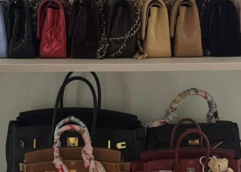 Моделот и дизајнер сега ја отвори вратата од својот скап гардеробер и покажа дел од својата колекција чанти, и тоа само брендовите „Хермес“ и „Шанел“.